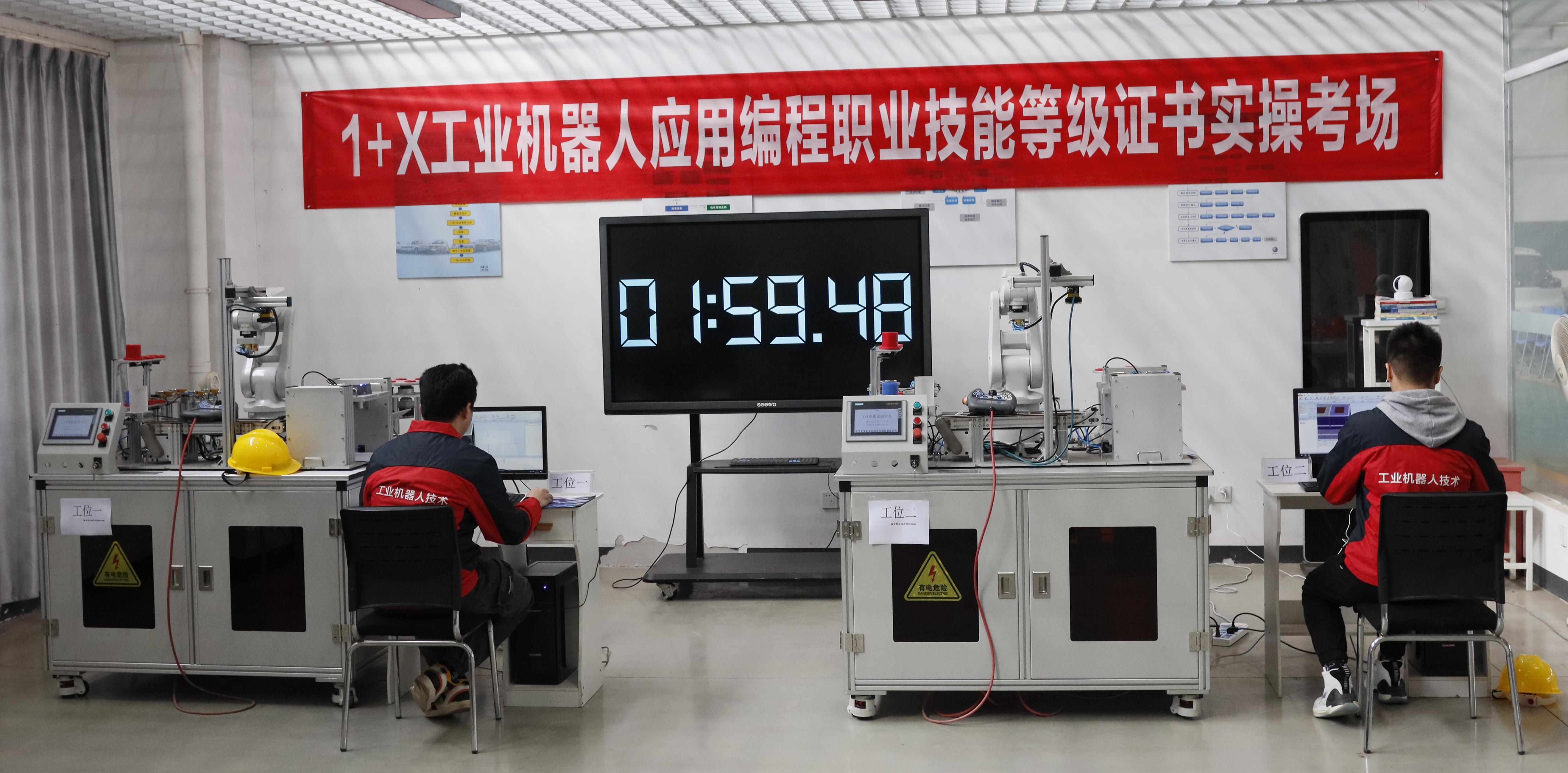 为深入贯彻《国家职业教育改革实施方案》精神,推进新时代职业教育的改革发展,做好1+X证书制度试点工作。williamhill12月3日-5日在现代制造技术搂工业机器人实训中心,圆满完成“1+X” 工业机器人应用编程职业技能等级(中级)证书考评工作,工业机器人技术专业20名员工参加此次考试。