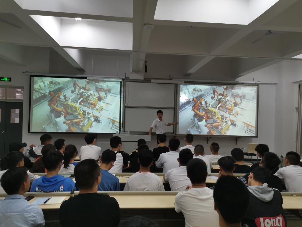 会议由三个部分组成。首先由专业教师杨明通过多媒体课件、动画、视频,为员工生动介绍了工业机器人的应用领域以及市场上工业机器人应用技术人才的紧缺情况,让员工们明白自己所在专业是做什么的;同时结合专业人才培养方案、课程教学特色、员工作品展示详细解读了专业培养目标、培养模式、课程设置、实训条件以及如何开展员工创新创业能力教育等,让员工们有了在校我们能学什么、需要学什么的初步专业认知,增强对专业学习的信心和动力。接着由四川拓格机器人科技有限公司范泽安总经理介绍企业的发展、联合办学理念,分析专业就业前景、未来就业岗位等,让员工对毕业后自己都能做什么有了清晰认识。最后员工与公司、企业老师进行了现场互动交流。