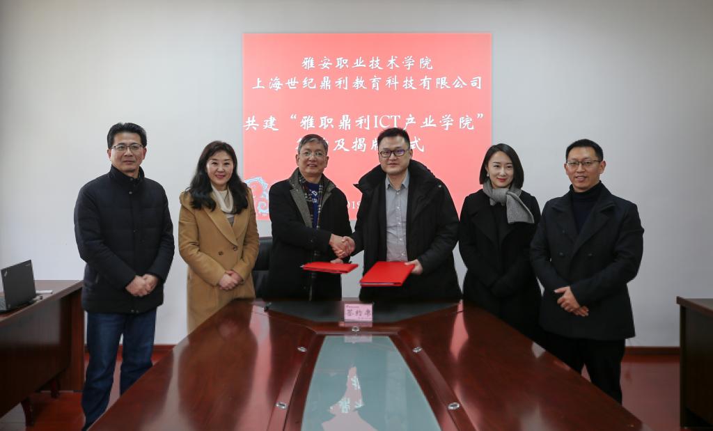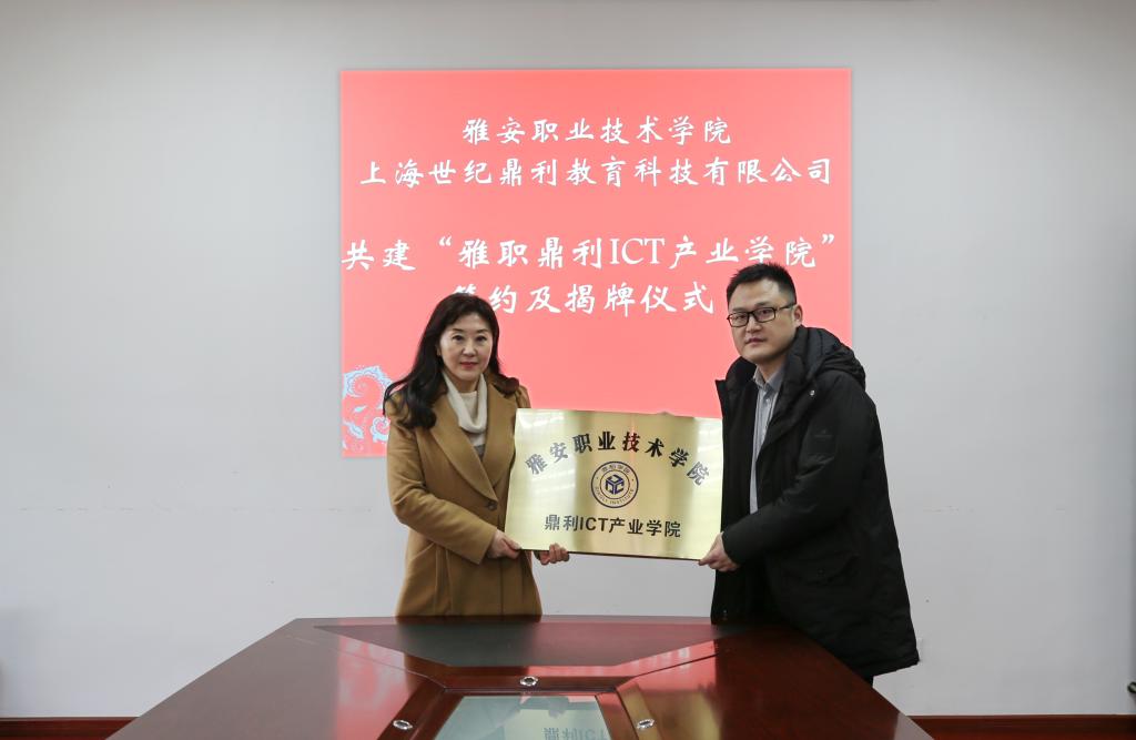 最后,由刘红副经理代表公司与上海世纪鼎利教育科技有限公司签订了共建“雅职鼎利ICT产业公司”协议,石静经理与鼎利刘勇军总经理共同为“雅职鼎利ICT产业公司”揭牌。