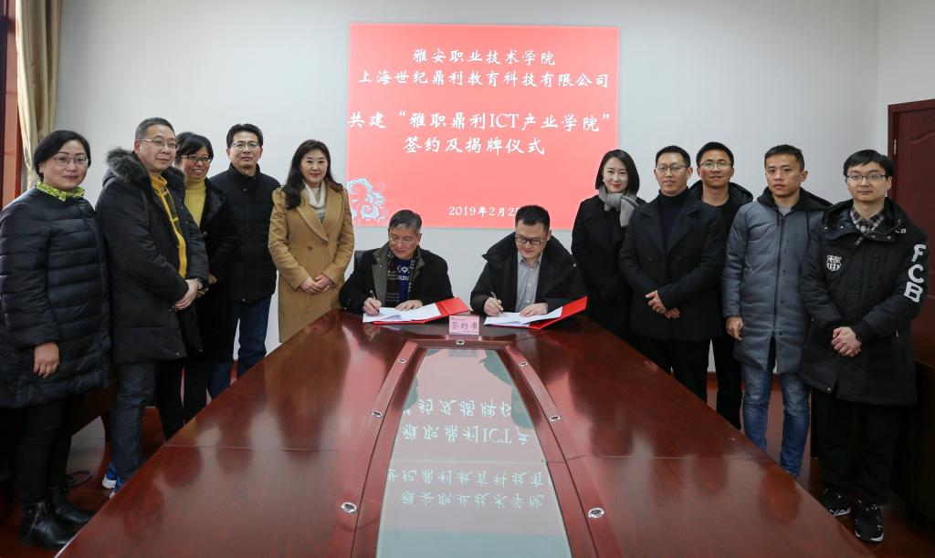 2019年2月25日,鼎利教育西南大区总经理刘勇军、行政副总向艳、销售副总罗永刚等一行前往公司,参加公司与上海世纪鼎利教育科技有限公司共建“雅职鼎利ICT产业公司”签约及揭牌仪式。经理石静、副经理刘红及党委委员宋立智、教务处、招就处及williamhill负责人参加会议。