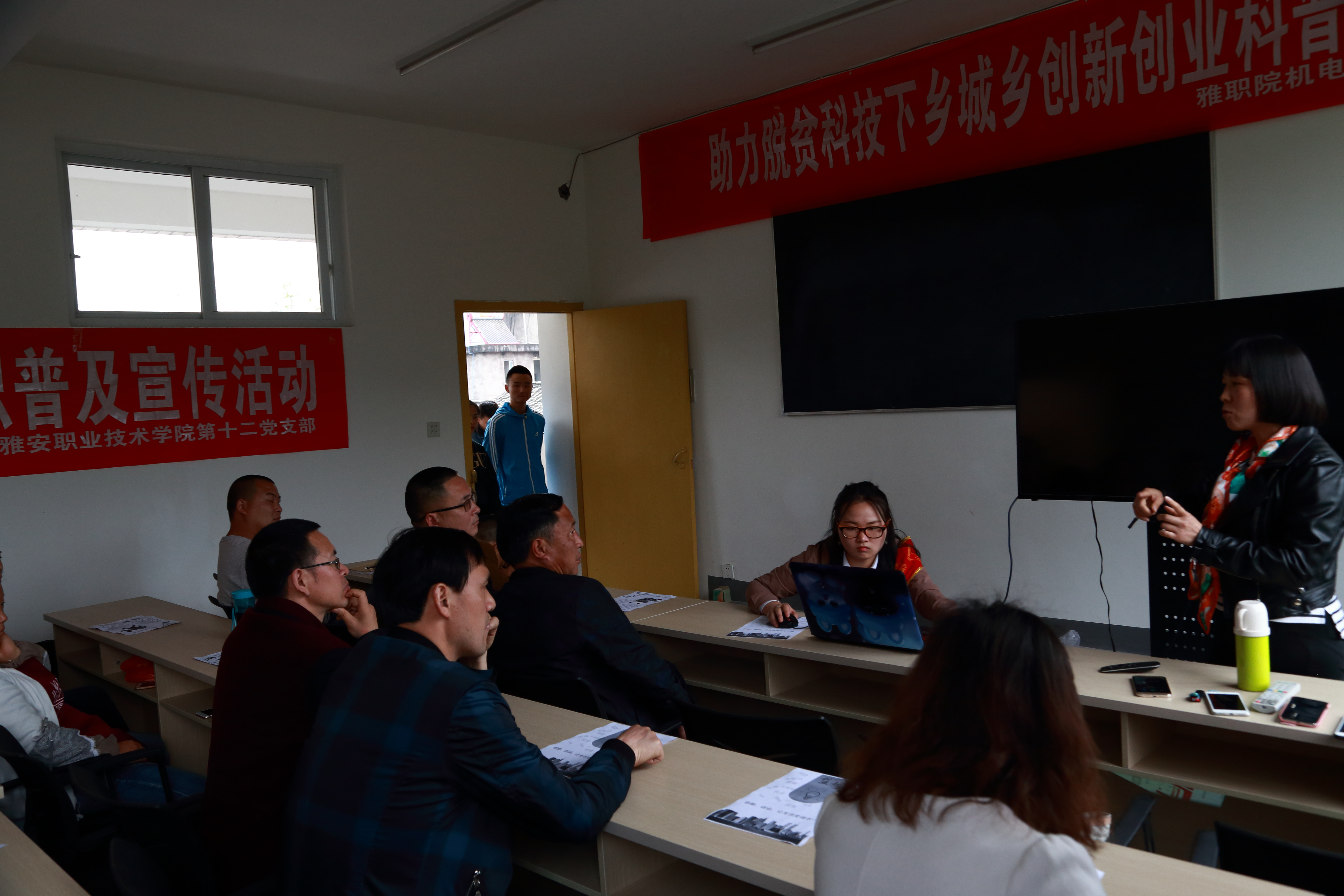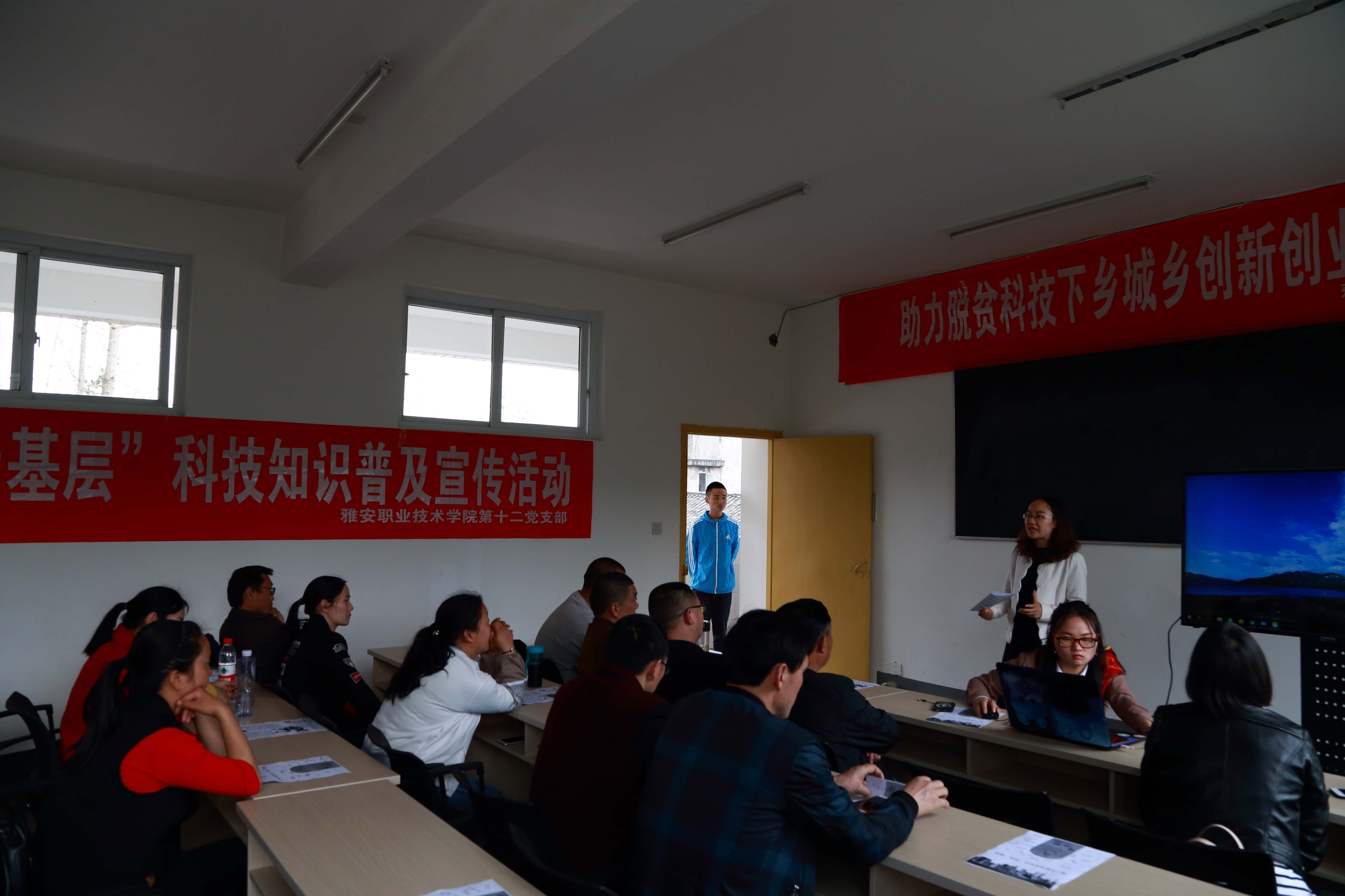 为普及科学知识,以科普扶智助力脱贫攻坚,营造城乡创新创业氛围,提高全民科学素质,3月29日中午,williamhill官网第十二党支部党员教师和志愿者一行22人,在雅安市名山区城东乡官田村夜校开展“走基层”科技知识普及宣传活动。