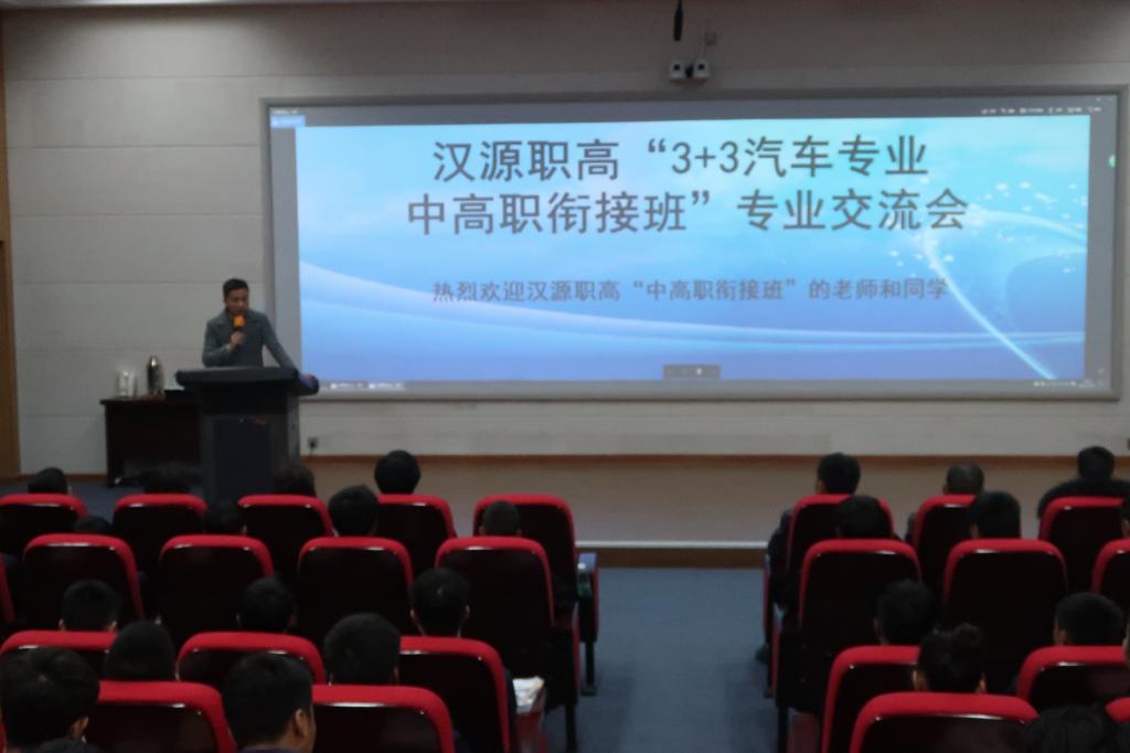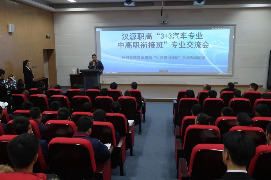2017年11月29日上午,由汉源职高党委书记张林带队,汉源职高副董事长白彬强、汉源职高招就处主任郭雄先、首批“3+3汽车专业中高职衔接班”等一行30人,来到公司经开区实训与服务中心,进行汽车专业交流活动。机电系副主任吕波、机电教研室主任唐翠微、汽车教研室主任宋晓雯、招就处教师王自红、汽车专业教师等参加交流会。