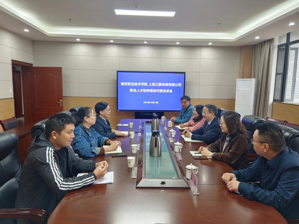 2023年10月19日上午,上海三菱电梯有限公司培训中心教务长朱武标一行5人到校进行联合培养人才精准对接洽谈。