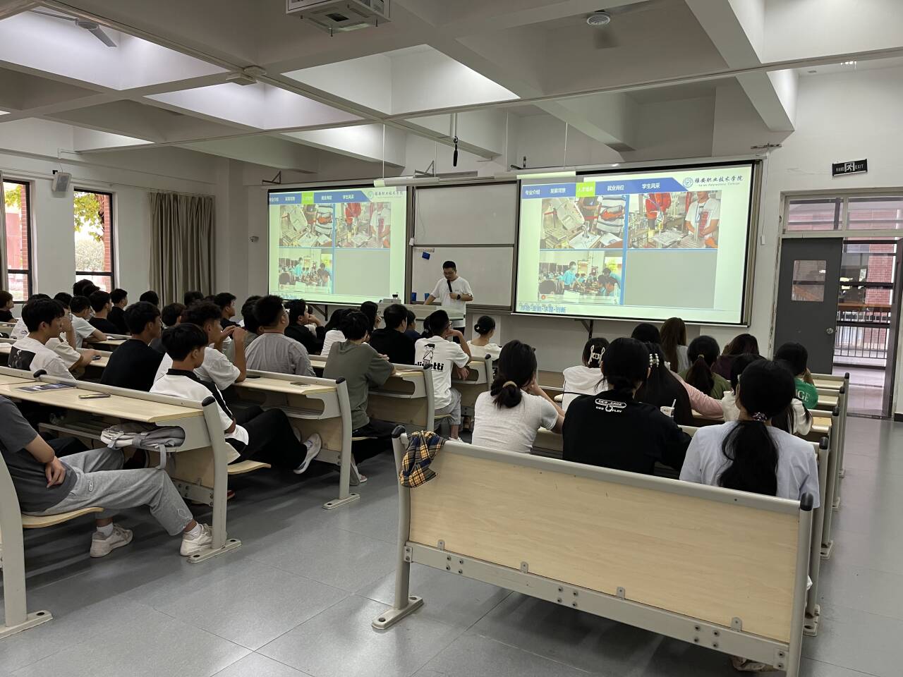 9月10日至11日,9个专业负责人分别通过生动的PPT展示、精彩的视频资料以及现场互动问答,详细介绍了各自专业的历史沿革、团队力量、课程设置、实践教学、就业前景及行业发展趋势等内容。特别是针对新生普遍关心的就业问题,各专业负责人分享了近年来毕业生的就业情况,还邀请了优秀员工通过视频连线方式,分享了他们的学习心得和职场经验,为新生提供了宝贵的参考和启示。在互动环节中,同学们积极提问,涉及专业方向选择、课程难度、实习实训机会等多个方面,老师们耐心解答,现场气氛热烈而活跃。