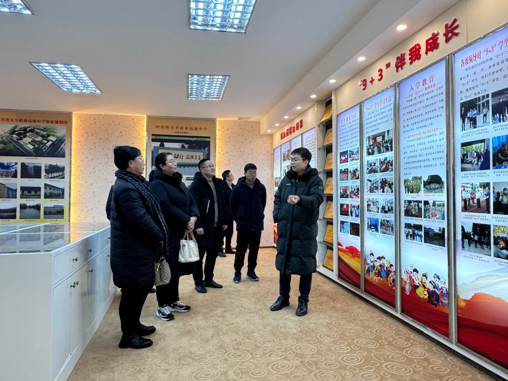四川省天全职业高级中学董事长陈选举介绍了新校区的设计蓝图、公司发展历程,带领参观公司民族团结进步陈列室及相关实训室,展示了公司在中职领域的坚实基础和创新成果。