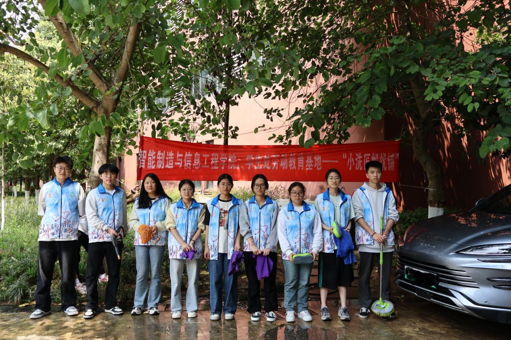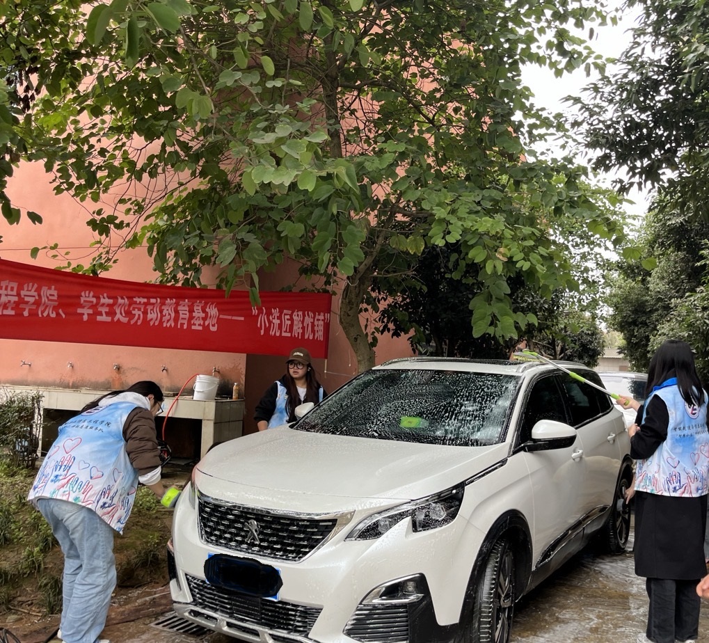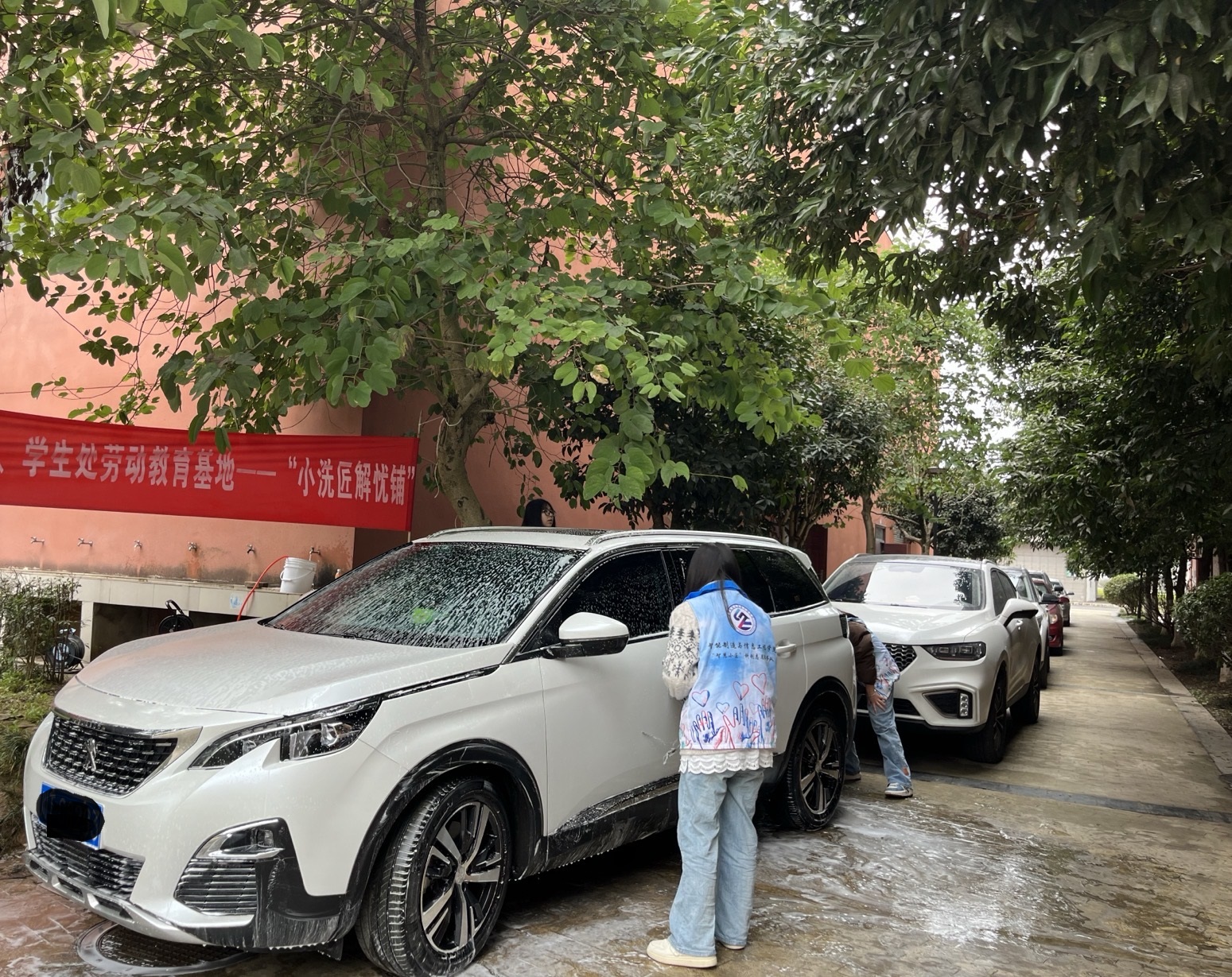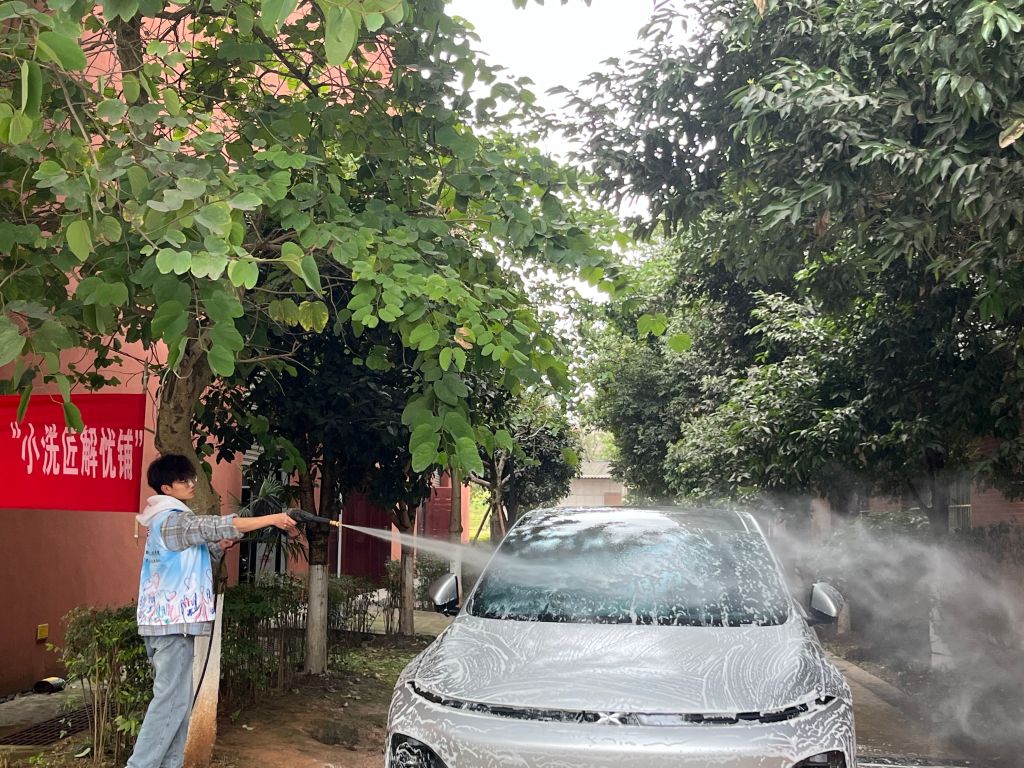 “小洗匠”们身着统一服装,分组开展车身清洁、车辆擦拭整理、轮胎养护等标准化服务。活动融合劳动教育与专业实训,机械专业员工讲解车辆保养知识,智能控制团队调试节水设备,志愿者在服务中践行“工匠精神”。2023级员工艾超感慨:“拧干每一块抹布、清理每一处缝隙,让我懂得了‘专业’二字的分量!”