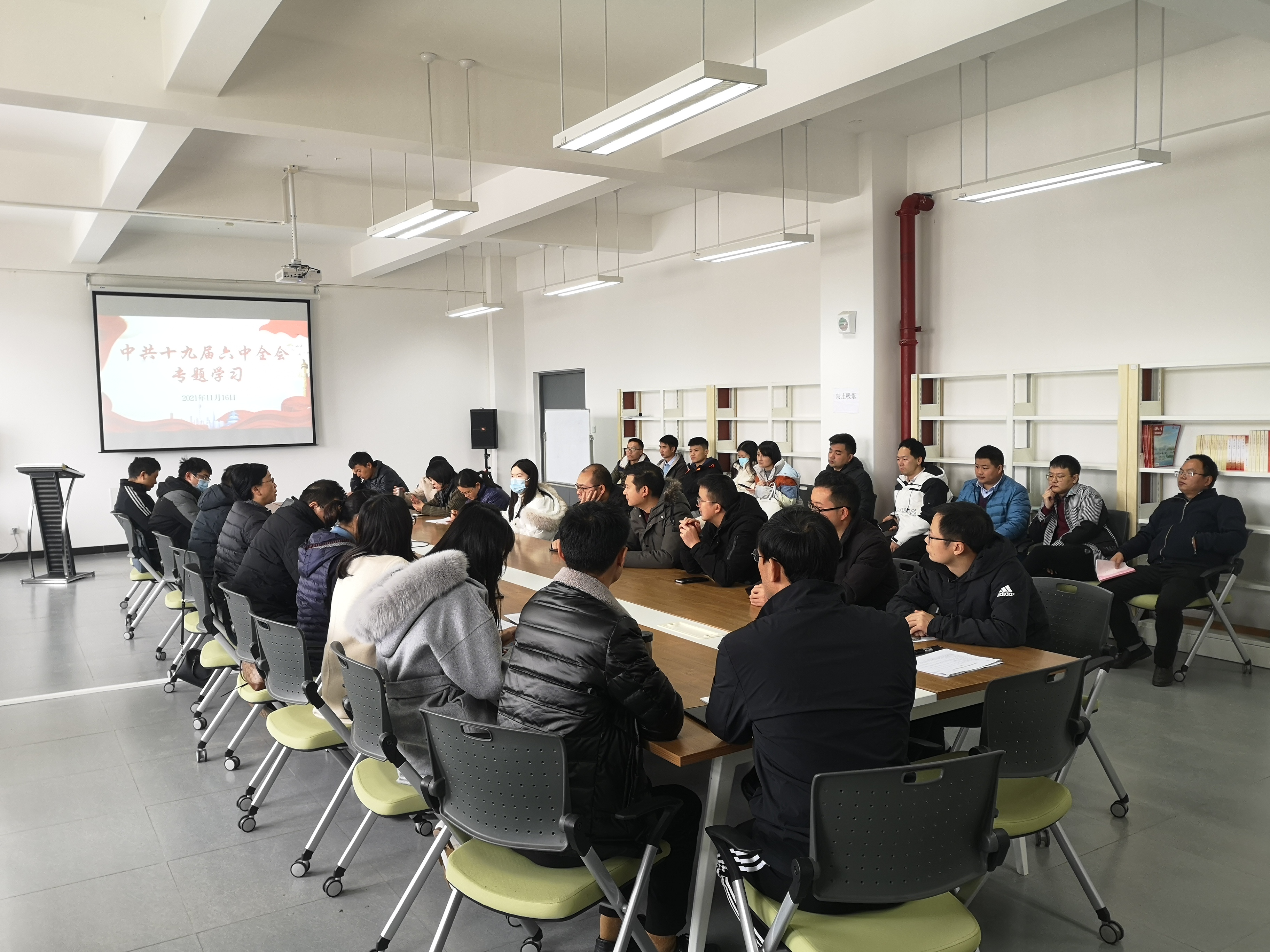2021年11月16日,williamhill全体教职工在经开区校区信息工程技术楼611会议室,召开学习党的十九届六中全会精神专题会。