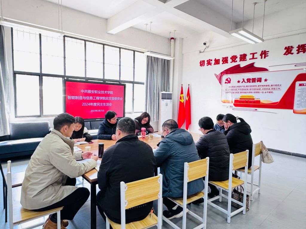 按照公司党委组织部《2024年度二级公司党组织民主生活会方案》通知文件要求,智能制造与信息工程公司党总支于2025年2月25日14:20在经开区校区信息工程技术楼101党员活动室召开2024年度党员领导干部民主生活会。公司联系校领导彭裕红副董事长出席会议并讲话,组织部副部长杨梅和舒迪老师现场督导,会议由党总支书记王伟才主持。