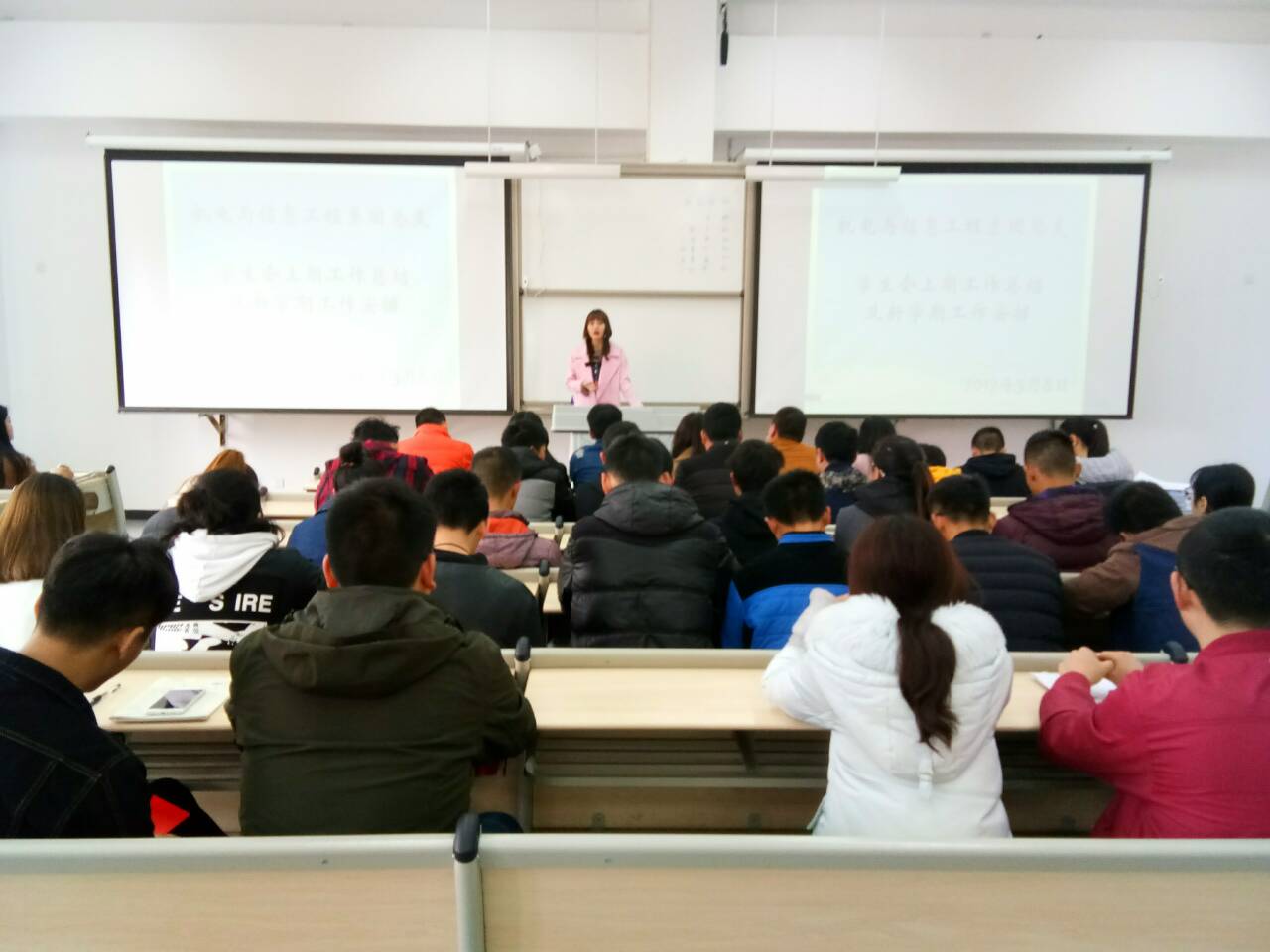 本次会议由主席团成员宋丽惠主持,团总支书记苏圆婷对员工会上半学期各项工作进行总结,并表达了对团、学干部工作的肯定,以及对员工会成员的希望与鼓励。同时,也对这学期机电系员工会工作做了一系列安排。