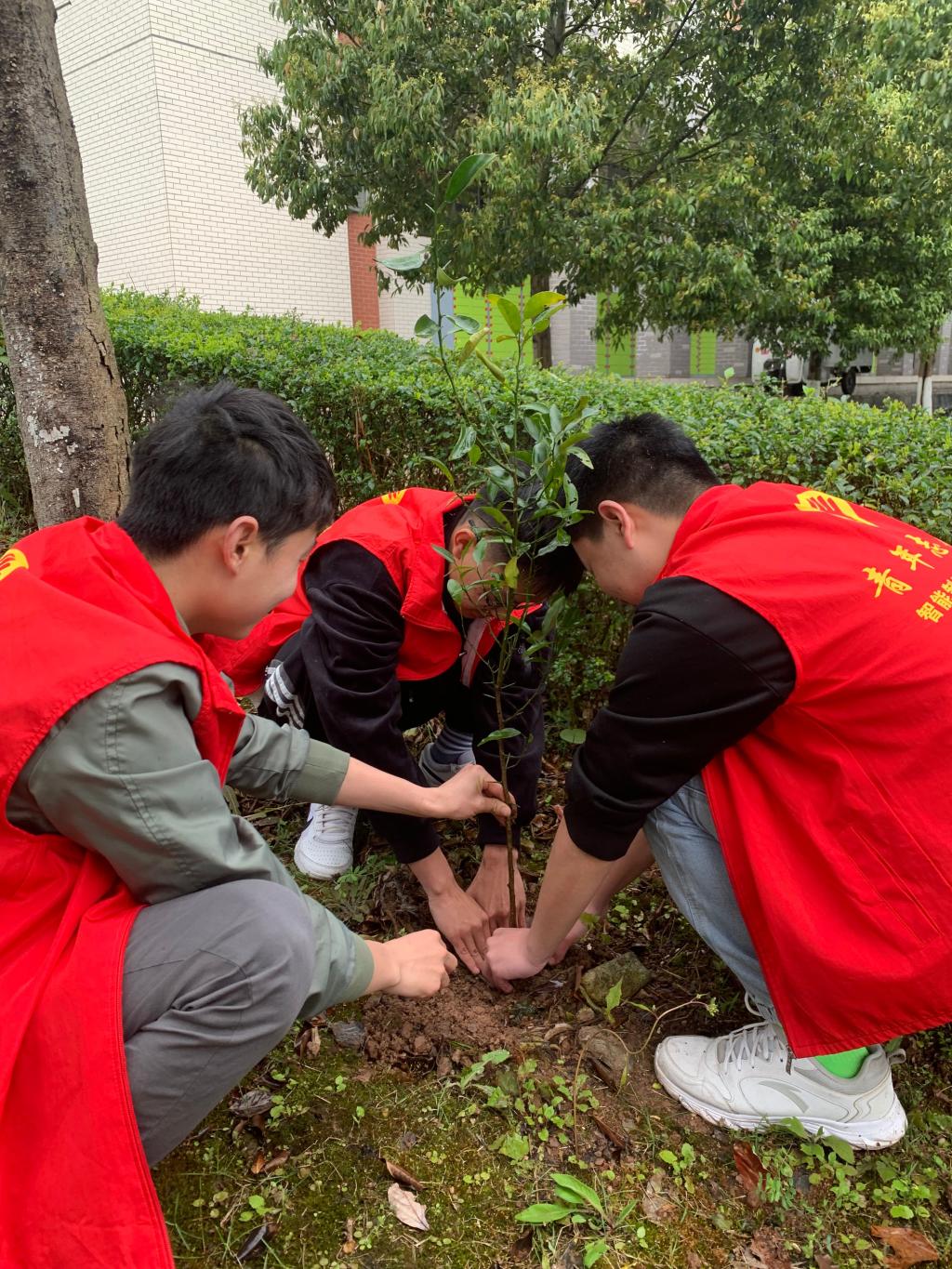 志愿者们首先在校园内进行植树节宣传,让大家了解植树节由来和意义,号召每位同学行动起来,爱护环境,从我做起,树立绿水青山就是金山银山理念,践行生态优先、绿色发展之路。接着,志愿者们主动示范,带着准备好的铁锹、锄头、水桶等工具来到植树区域,他们挥锹填土、分工协作、默契配合、干劲十足,整个现场热火朝天,充满了欢声笑语。经过数小时的努力,一颗颗小树苗舒展着身体,一抹抹新绿呈现在眼前,展露出勃勃生机。