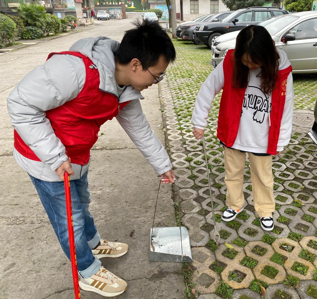 活动中,青年志愿者们分工协作,担当卫生小卫士,对社区公共区域进行美化,将小区主干道和绿化带里的纸屑、烟头等垃圾进行清扫;担当宣传小卫士,走进居民家中宣传如何区分垃圾种类、分类垃圾处置流程等小知识,用科学方法主动参与到营造整洁社区环境行动中。志愿者们积极劳动、热心服务的行动,受到社区居民纷纷点赞,他们积极践行着“奉献、友爱、互助、进步”的志愿精神。