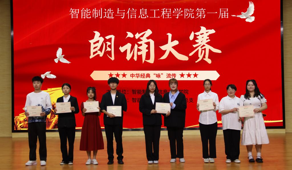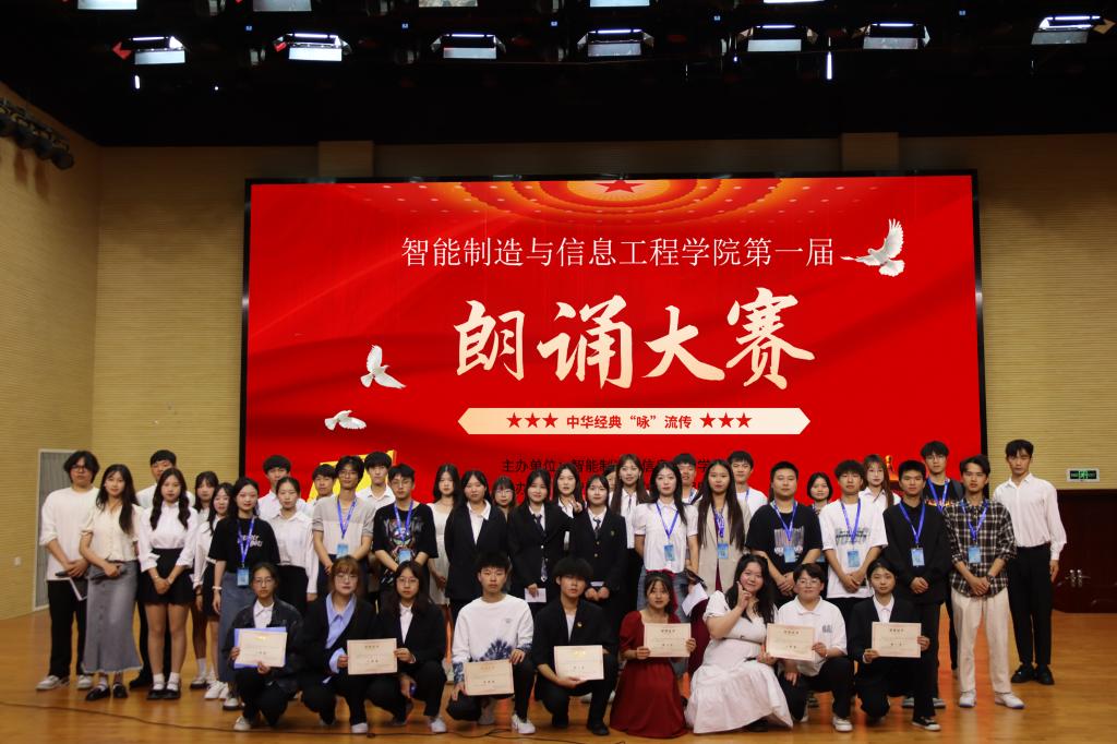 比赛分为个人朗诵和团体朗诵。“我看见了一面旗帜,一面被炮火撕裂的红旗依然牢牢的握在他们的手中,他们正冒着敌人的炮火前进!……”比赛在同学们激越昂扬的朗诵《不朽》中拉开了序幕,同学们以铿锵有力的声调、饱满充沛的情感,采用配乐朗诵、情景式朗诵、个性化沉浸式朗诵等表现方式,抒发着对党的忠诚热爱,对英雄的崇敬赞美,以及对未来的美好憧憬。16支团队及个人依序进行诵吟,经过激烈角逐,最后朗诵作品《不朽》获得团体一等奖,作品《中华颂》获得个人一等奖。