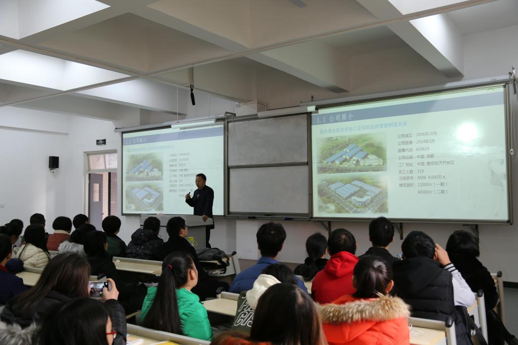 12月21日中午,由雅安格纳斯光电科技有限公司冠名的第三届“格纳斯”杯创新创业作品、产品设计大赛启动会在经开区2104举行。会上格纳斯董事长、总经理王斌向指导老师和2016、2017级的信息类及机电类专业近180人进行了需求沟通。
