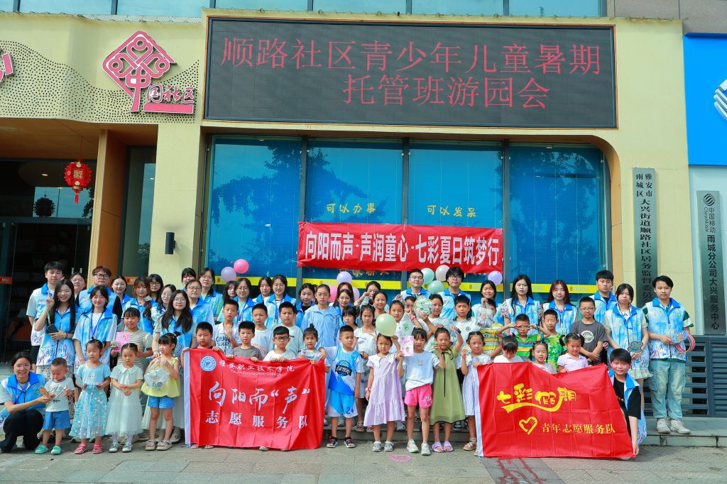 向阳而“声”志愿服务队是一支以声音表达为媒介的队伍,于2024年6月成功遴选上由团中央青年志愿者行动指导中心、中国青年志愿者协会秘书处组织的关爱行动“七彩假期”志愿服务团活动,并在雨城区大兴顺路社区开展了为期13天的志愿服务活动。团队以实干的精神、务实的作风、关心关爱留守儿童,助力儿童健康成长,在积极心理学视域下,从心声、心生、心灵、心光四个角度出发,因材施教,寓教于乐,帮助增强儿童自信心,塑造积极向上的心理品质。