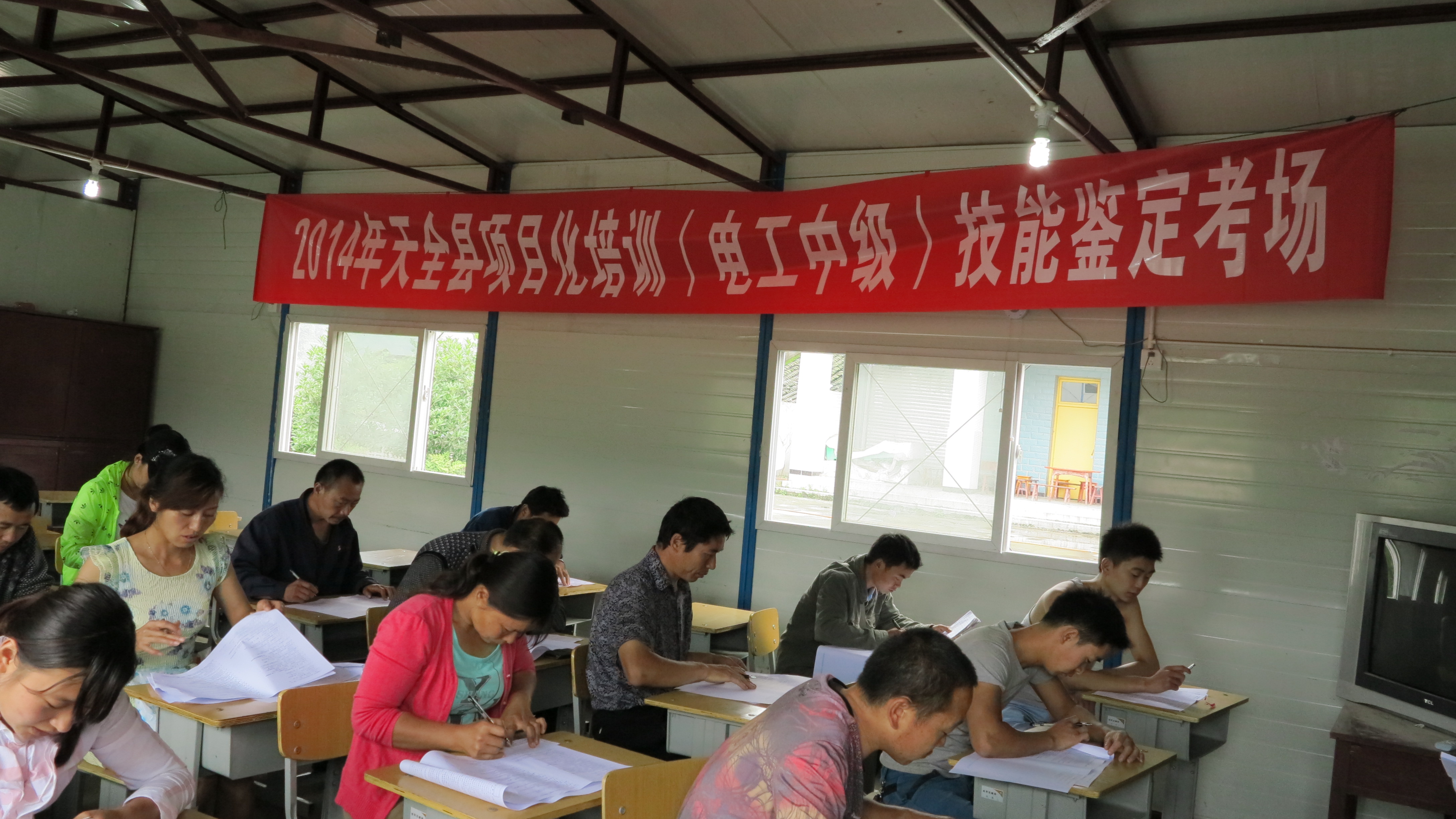 2014年6月起,我系在天全县乐英开展了面向农民工的技能培训,包括电工、焊工等工种,经过近2个月的技能培训,参培学员基本掌握了电工和焊工等工种所要求的最新实用知识和技术,下面是8月技能鉴定考试现场图片。