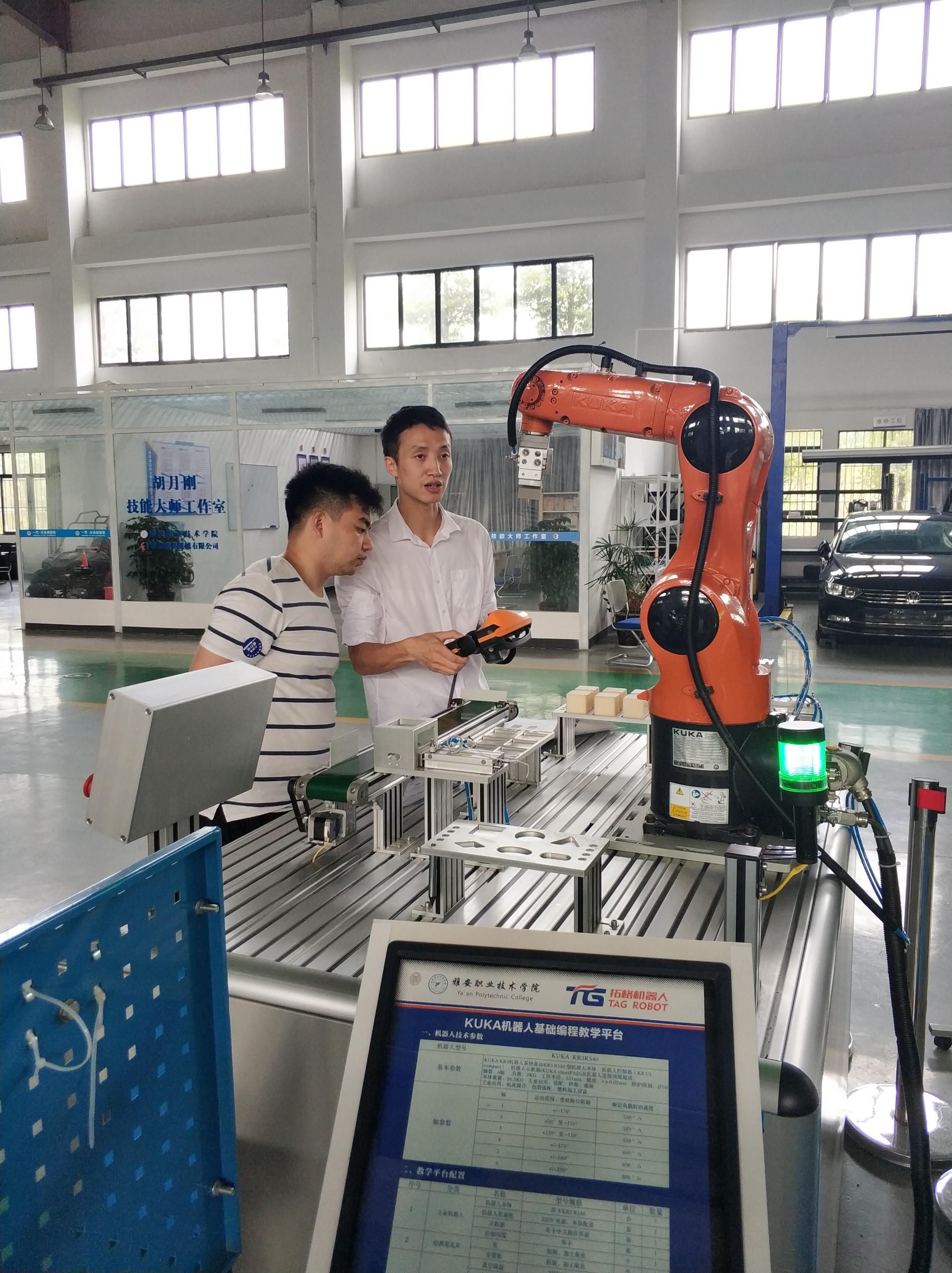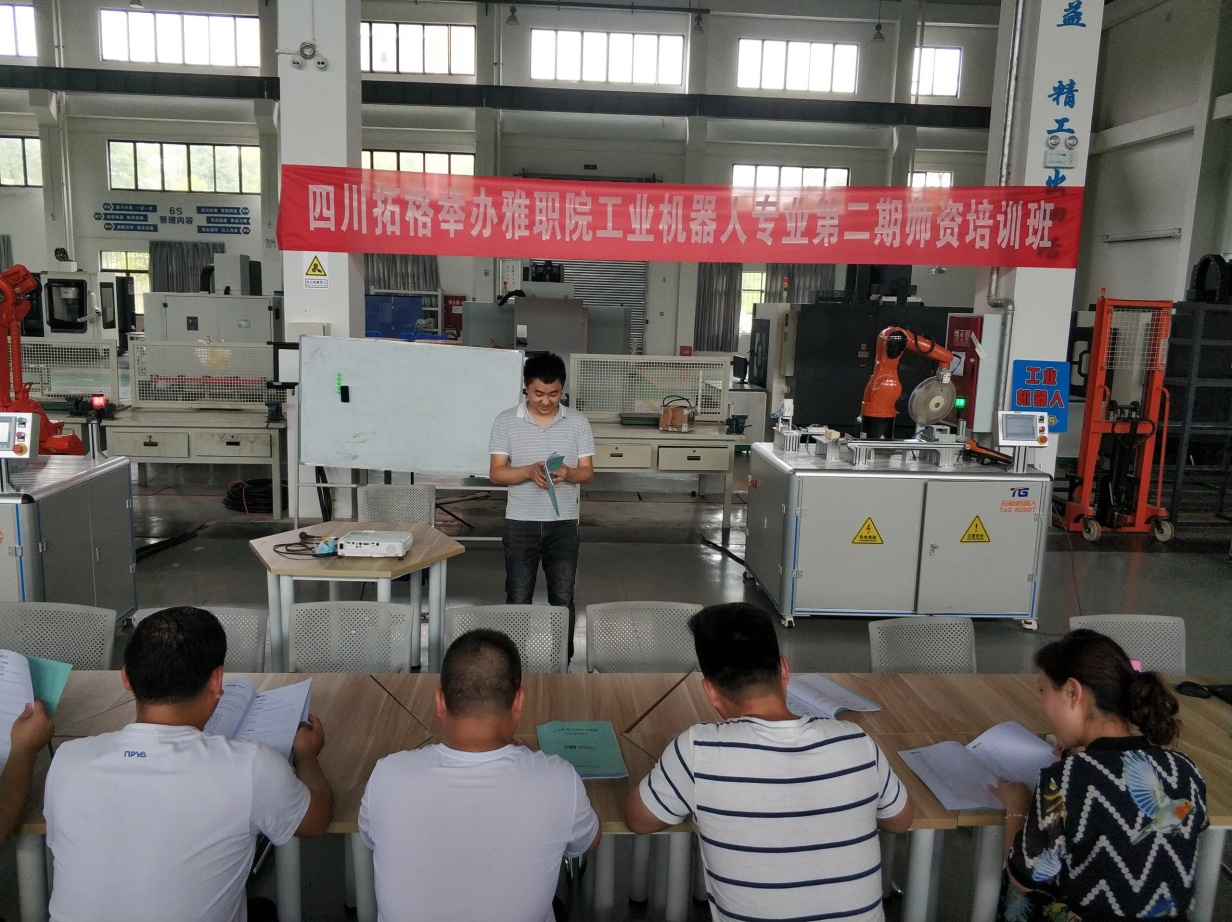 为深化校企团队融合,促进工业机器人技术专业团队队伍建设,助推校内教师专业转型,提升团队团队的专业技能和实践能力,williamhill联合四川拓格机器人科技有限公司于2020年7月9日-12日在工业机器人实训中心进行了为期4天的工业机器人运用与编程专业技能培训,企业高级工程师、工业机器人技术专业负责人、专业教师等共计8位老师参与了此次培训。